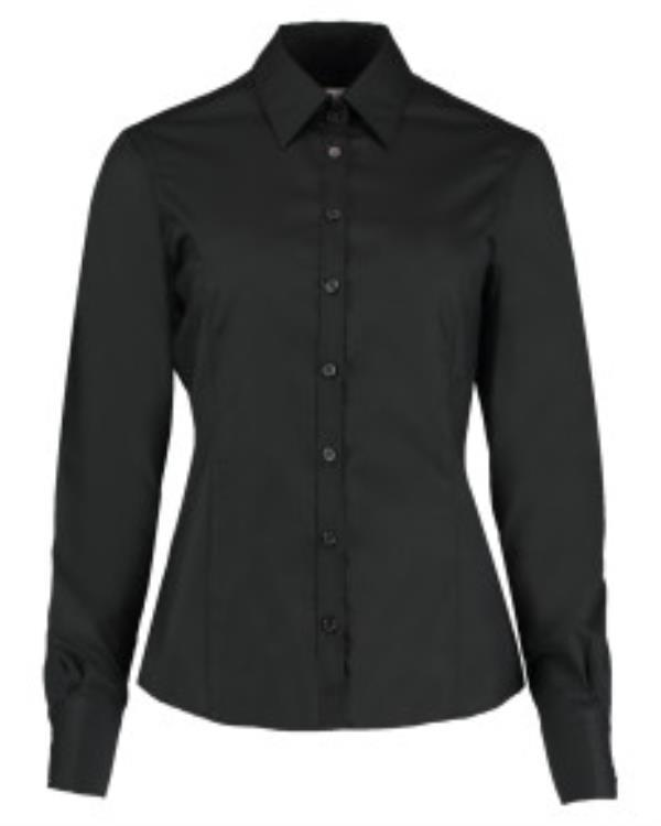 Fused stand up collar, Princess seaming to front and back, Rounded hem, Spare buttons