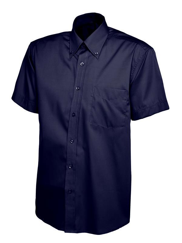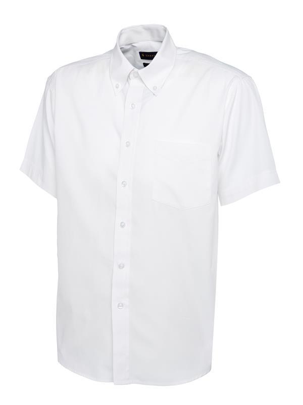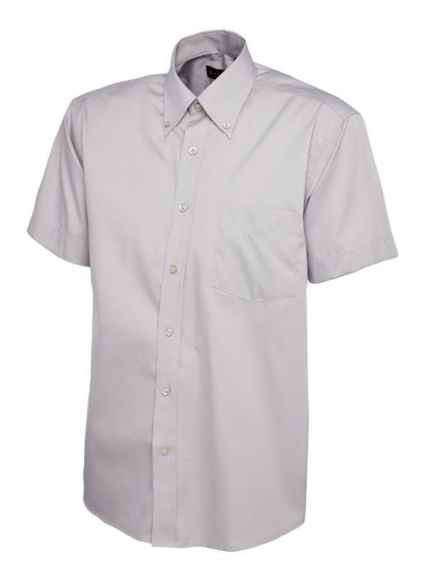 140 GSM Weight, 15% Polyester 85% Combed Cotton, Wrinkle Free Fabric, Button Down Fused Collar, Shirt Tail Bottom, Two Spare Buttons, Pin Point Oxford Weave, Short Sleeve, Pocket on Left Breast, Inverted Pleat at the Back for Movement, Double Folded Seams, Garment measurements have a tolerance of +/- 2.5cm