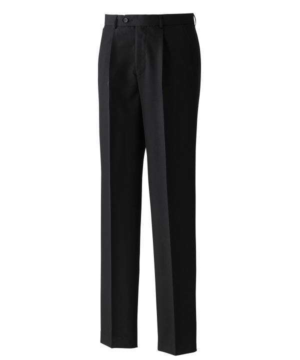Mens polyester trousers,Single pleated front, belt loops,YKK zip fly,Button with hook 'n' bar fastening at waist,Rear jetted pocket
