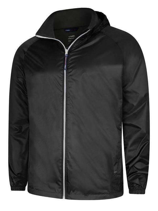 Superstrong Lightweight 100% Nylon Waterproof Coated Fabric with a Water Penetration Rating of 3000 mm, Breathable Fabric with a MVP (Moisture Vapour) Rating of 3000 g, Elasticated Concealed Hood, Raglan Sleeves with Elasticated Cuffs, Hem with 2 Adjustable Shock Cords, Two Lower Zipped Pockets, Windproof, Taped Seams, Stowable Bag, Hanger Loop, Smart Contemporary Fit