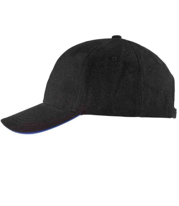 6 panel, Six ventilation eyelets., Contrast sandwich peak on certain colours., Size adjuster with metal buckle.