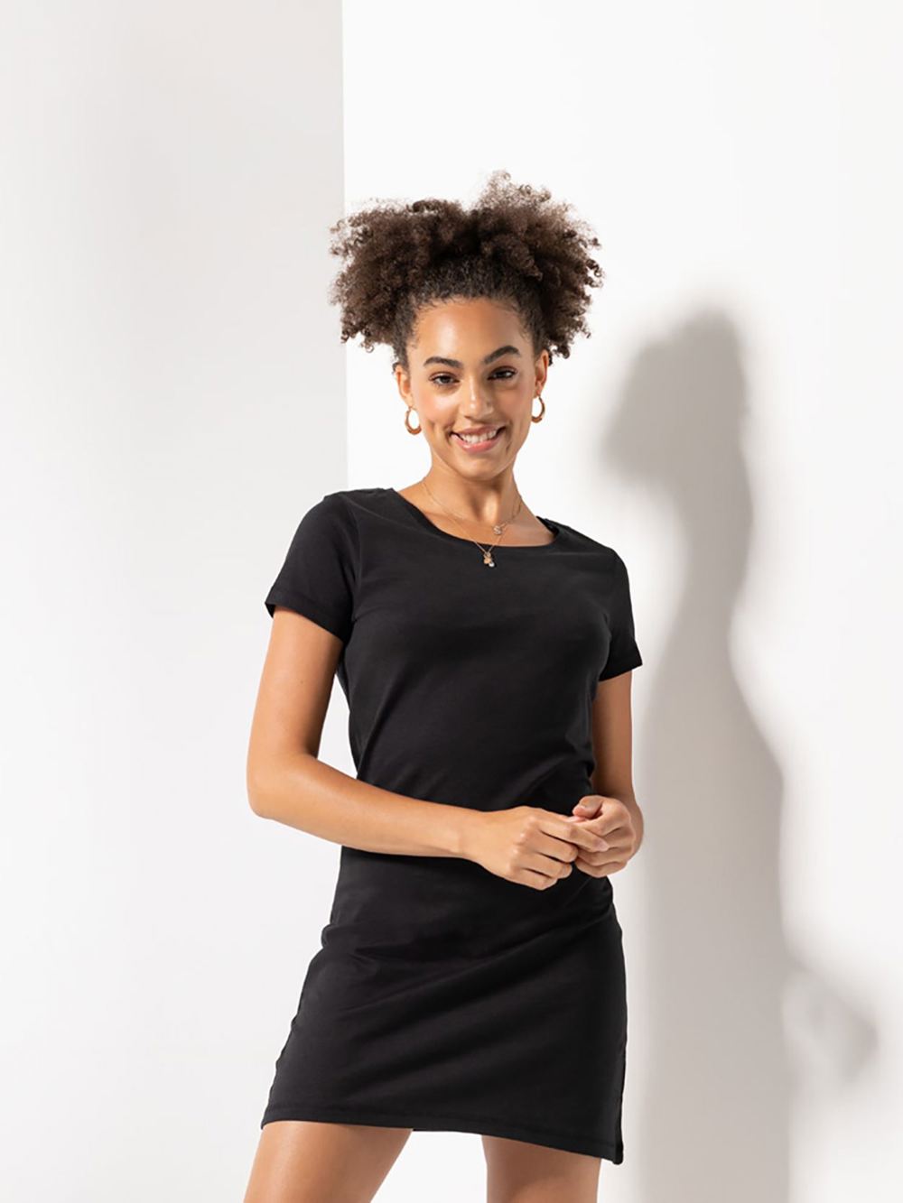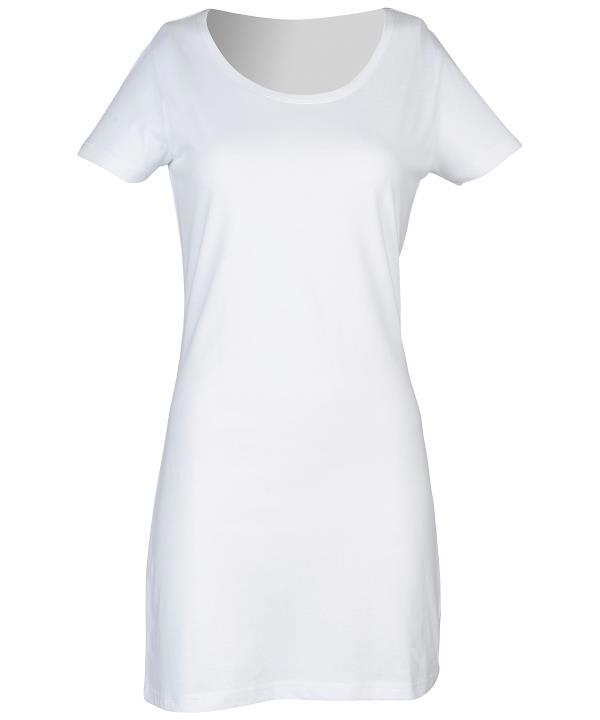 100% Cotton, single jersey, 180gsm, Very long line T-shirt. Can be worn as a long line t-shirt or a dress., Scoop neck, Capped sleeves, Shaped to fit